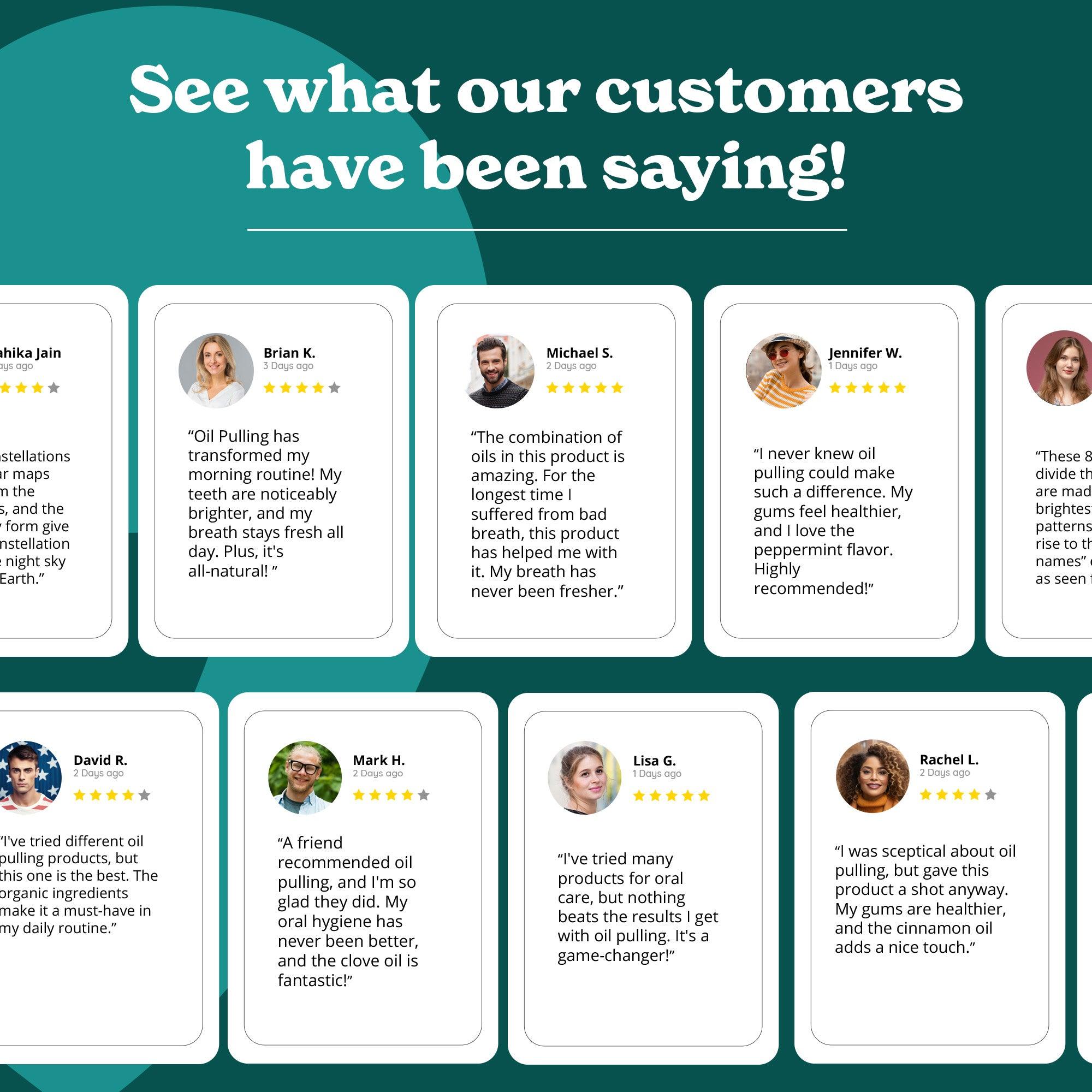 - Packed with coconut, sunflower, peppermint, clove, sesame, and cinnamon oils, each ingredient brings unique benefits—removing toxins, soothing inflammation, freshening breath, and supporting healthy gums.