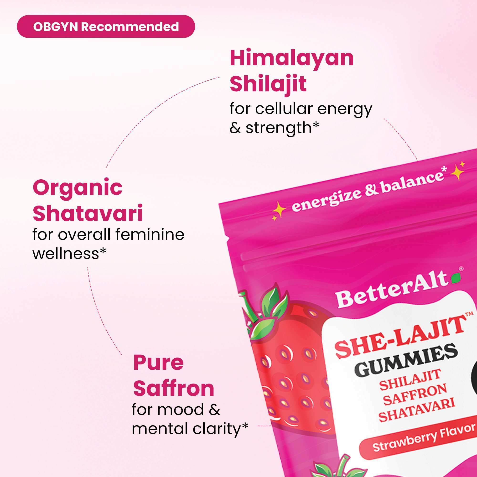 She-lajit is the first ever product to combine pure Himalayan Shilajit, Shatavari and Saffron to support overall feminine wellness.